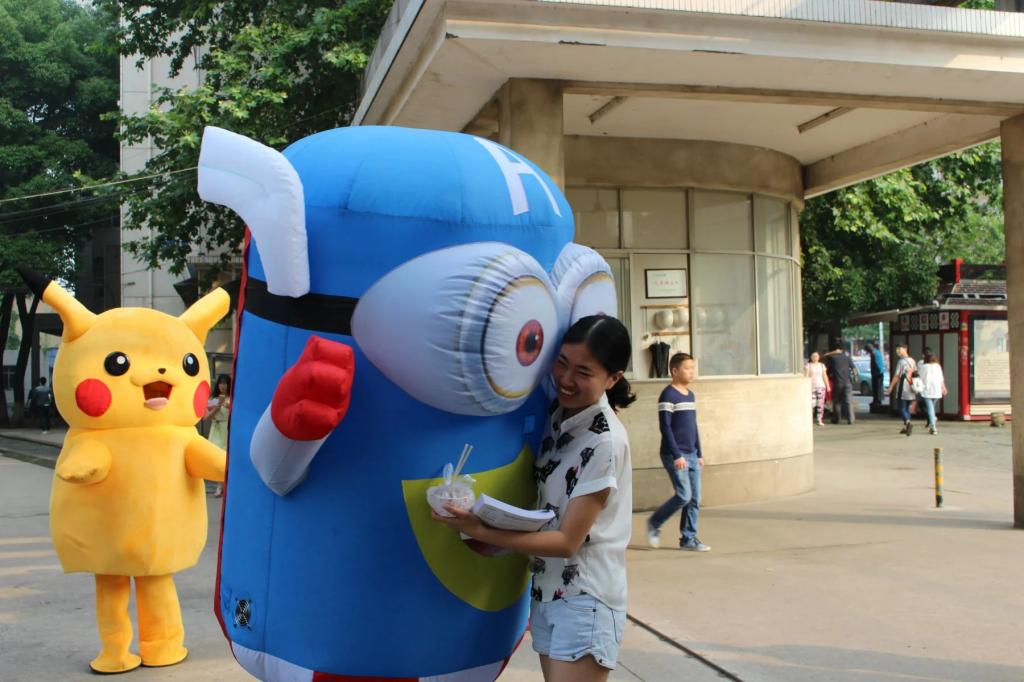 5月24日清晨,我校心理健康教育中心开展了“爱的抱抱”宣传活动,五个来自不同学院的学生身穿玩偶衣服,将大白、皮卡丘等鲜活的动漫角色展现在交院教职工的面前,匆匆路过的交院学子也被这有趣的情景吸引,纷纷与这些可爱的角色拥抱拍照。心理健康教育中心的罗黎老师告诉记者,5月25日是全国大学生心理健康日,此次活动旨在宣传大学生心理健康教育,积极营造良好的心理健康教育氛围,也希望将好心情传递给广大交院学子。