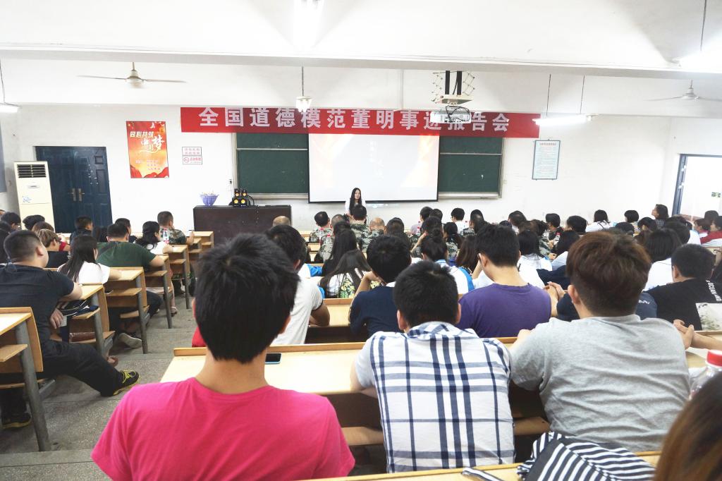 5月19日,人文与艺术设计学院开展了全国道德模范进校园活动,全国道德模范董明应邀来校为教职工和优秀学生代表作了主题为《有一种幸福叫奉献》的报告。