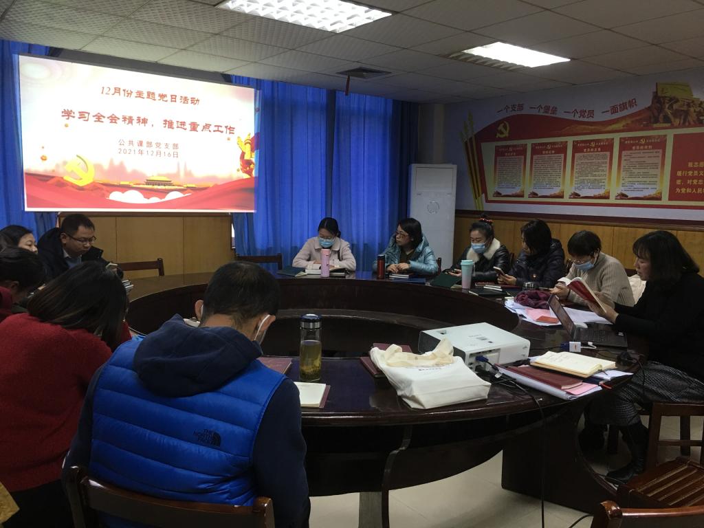 12月16日,公共课部党支部在党员活动室开展了“学习全会精神,推进重点工作”主题党日活动,支部全体党员参加。