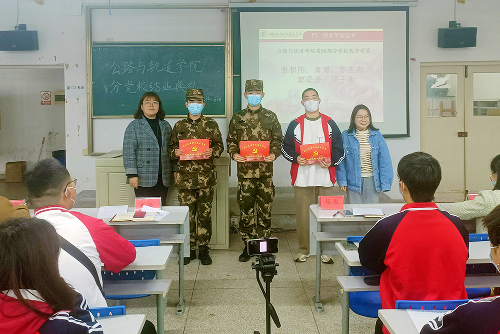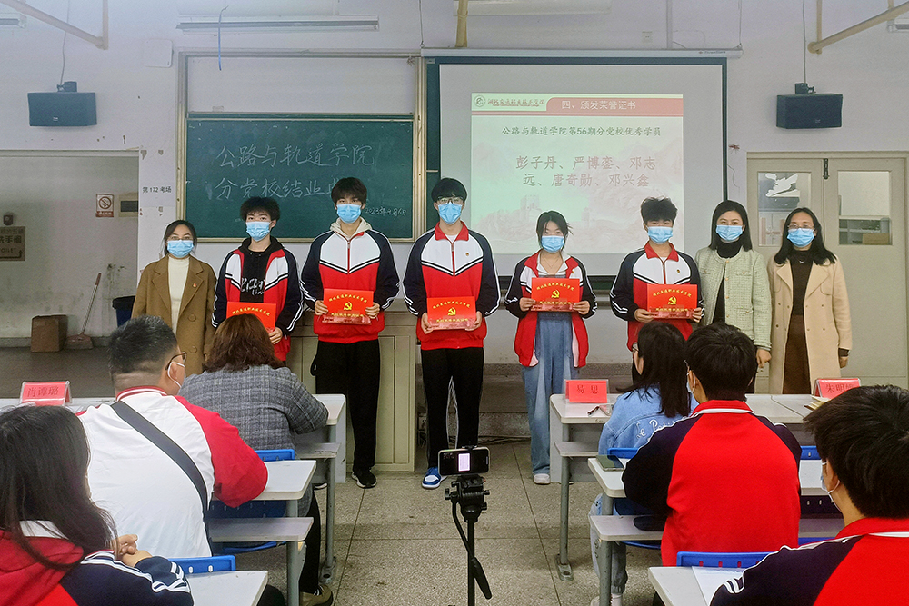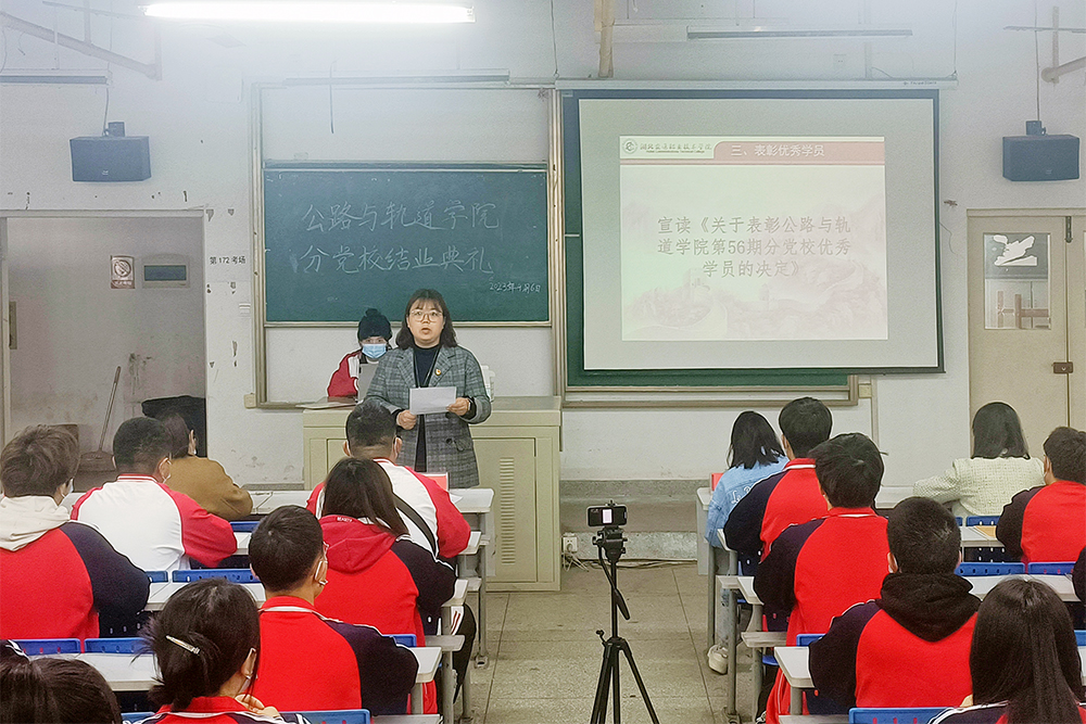 4月6日下午,公路与轨道学院第56期入党积极分子党校结业典礼在实训中心603教室顺利举行。学院党总支专职副书记朱婧、学生党支部书记易思、专职组织员邵丹怡、党校教师及56期党校全体学员110余人参与此次典礼。