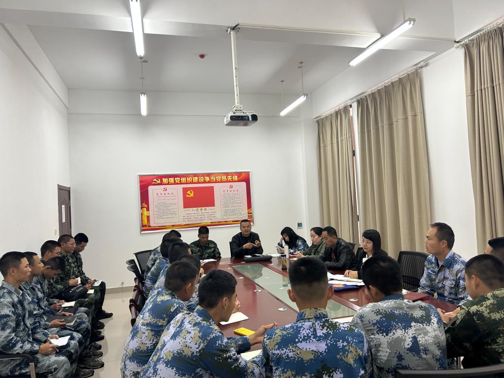 会上,全体党员缴纳了党费,重温了入党誓词,并集体诵读党章,集中学习了《湖北省2023年“4. 15”全民国家安全教育日暨年度国家安全宣传教育方案》、《中国共产党纪律检查委员会工作条例》、《在中央党校建校90周年庆祝大会暨2023年春季学期开学典礼上的讲话》等文件。翟小龙同志结合自身工作,就做好军士生国家安全教育、防间保密教育等方面作了交流发言。支部书记余友田对党支部近期工作做了总结。