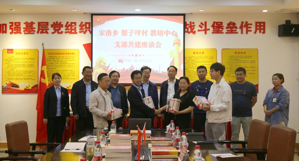 在座谈会上,教培中心首先向梨子坪村捐赠了图书,接着签订了支部结对共建协议书,最后沈俊岭和严石林书记分别介绍了教培中心和梨子坪村支部和党建工作开展基本情况,所有参会人员进行了交流发言。
