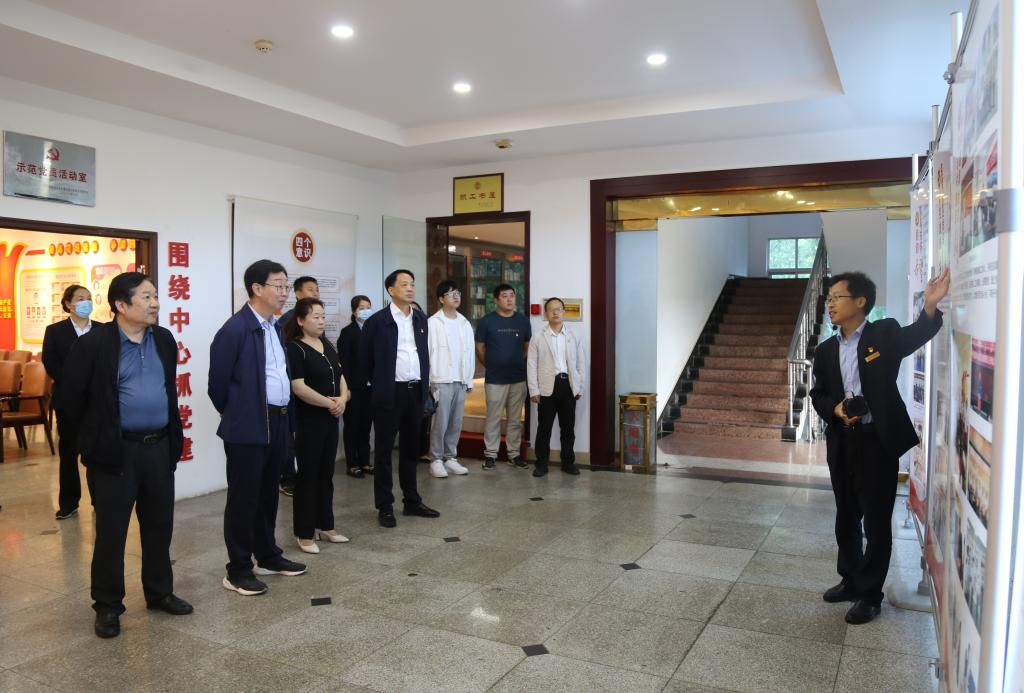 在教培中心党支部负责人带领下,严石林一行实地参观了教培中心党风廉政展板、省总工会示范职工书屋、省厅示范党员活动室、中心客房及中厨房等。