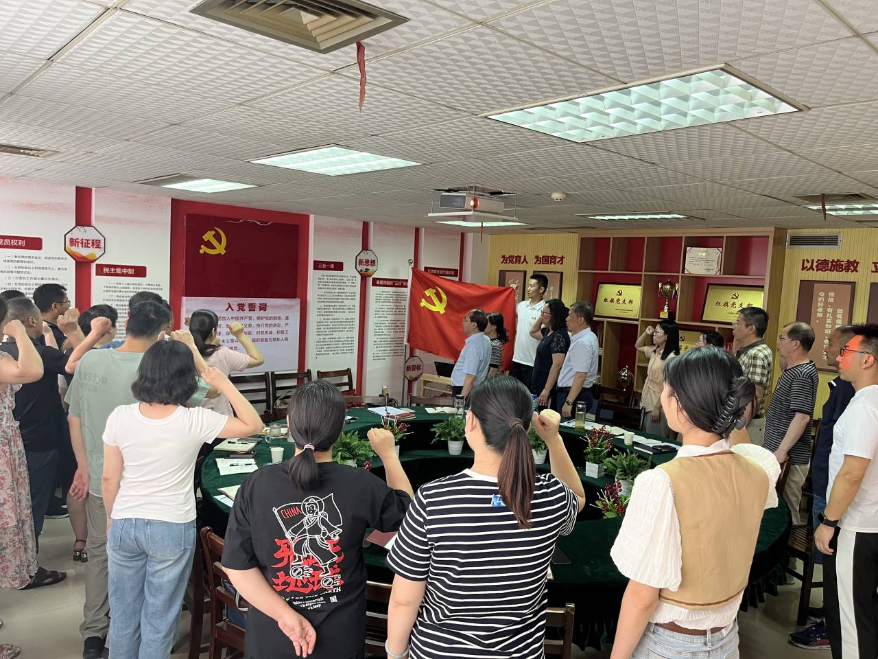 本次联合主题党日活动,内容丰富、形式多样,通过重温入党誓词、集体诵读党章、主讲党课、文件学习、以案学纪、支部交流等方式,围绕“学习贯彻习总书记重要讲话精神 以学增智推动主题教育走深走实”开展主题党日活动。 加强了党总支和党支部之间的沟通与交流、加深了党员同志之间的深厚情谊。同时,系列学习活动的开展,有助于贯彻习总书记重要讲话精神,提高党员的政治素养、增强纪律意识,从而推动主题教育真正走深走实。(摄影/孙美英)