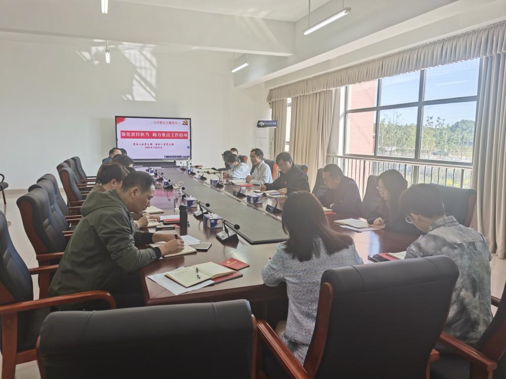 10月23日下午,党办工会党支部与组织人事党支部在学校行政楼会议室联合开展“强化责任担当 助力重点工作结项”主题党日活动,活动由党办工会党支部书记夏勇子主持,两个支部党员同志参会。