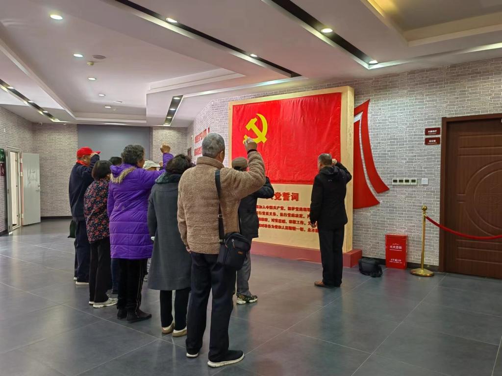 在陈列馆,支部书记江继中带领全体党员在党旗前重温入党誓词,谌绪友同志领学了“习近平对宣传思想文化工作作出重要指示精神”文件,老党员同志们认真聆听专业讲解,通过历史史实、场景再现、文物展览等多种形式再现抗战时期的场景,展示了新四军第五师在抗战期间,独立支撑武汉外围敌后抗战的百折不挠、骁勇善战的爱国主义精神。