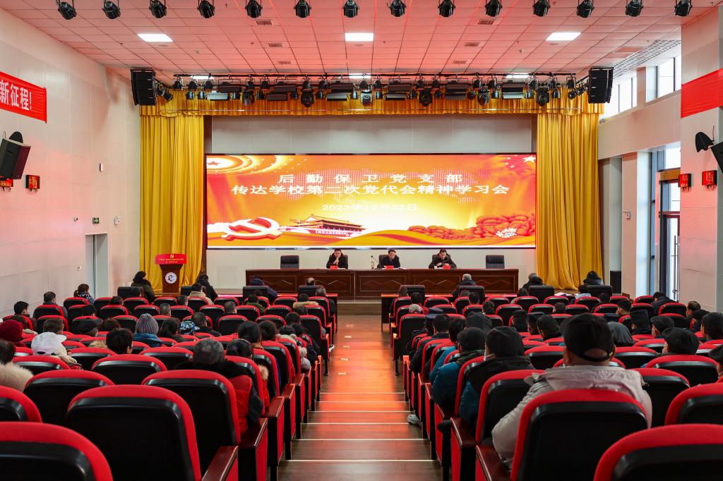 12月22日下午,后勤保卫党支部在图书馆学术报告厅召开传达学习学校第二次党代会精神专题会。校党委委员、副校长施裕国出席会议并讲话,党委办公室副主任夏勇子作专题解读,支部书记孙猛主持会议,后勤保卫全体干部职工及托管单位人员参加学习。