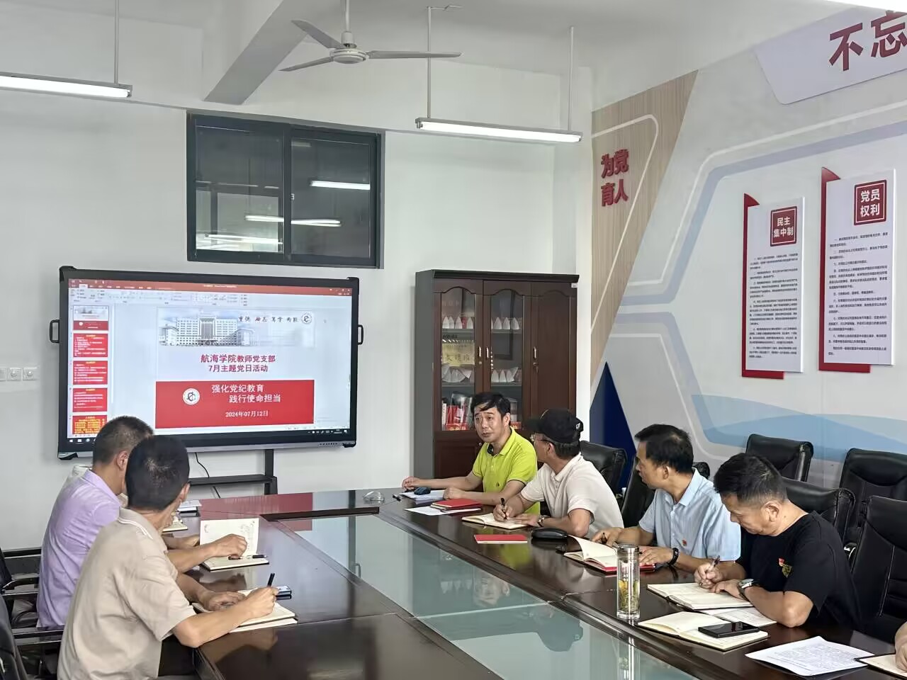 7月12日,航海学院教师党支部在笃学楼310党员活动室开展了以“强化党纪教育,践行使命担当”为主题的七月份主题党日活动。此次活动由支部书记周游主持,航海学院教师党支部全体党员参与。