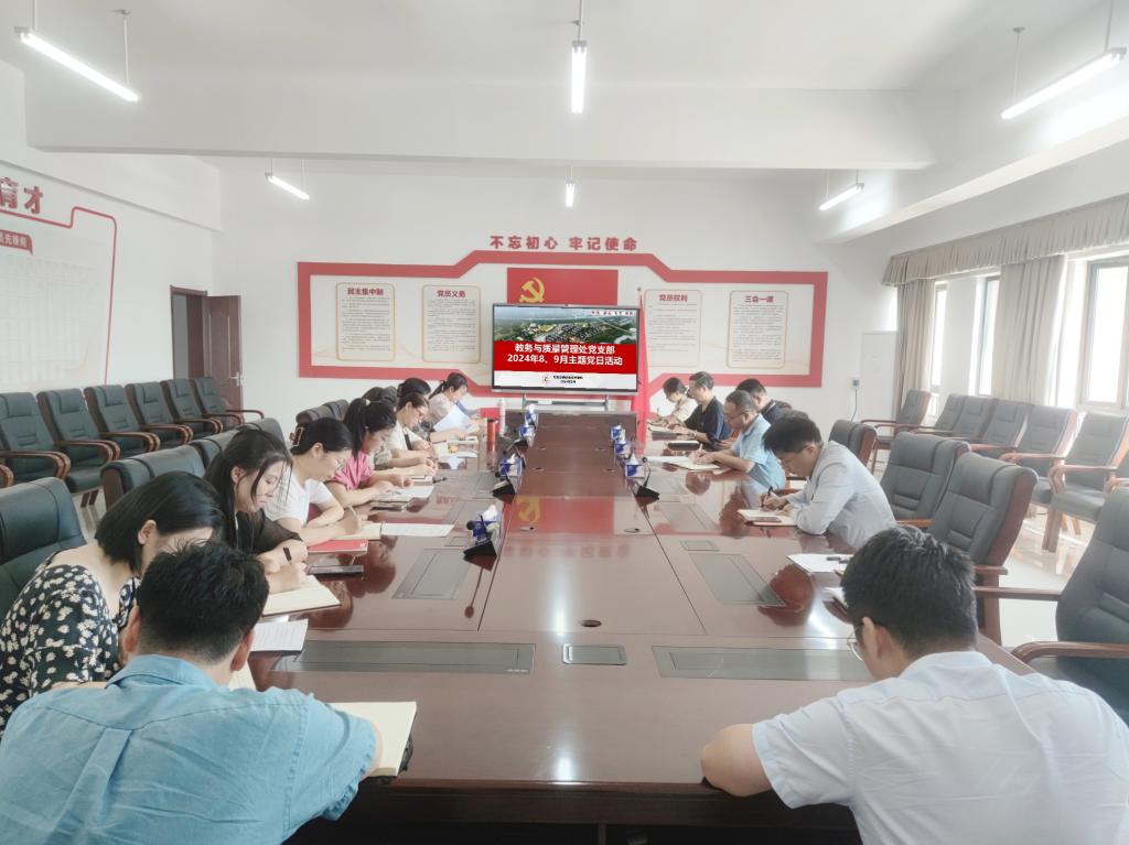 9月26日下午,教务与质量管理处党支部在行政楼4楼会议室开展8、9月主题党日活动,支部书记上官兵同志主持会议,全体党员参加学习。