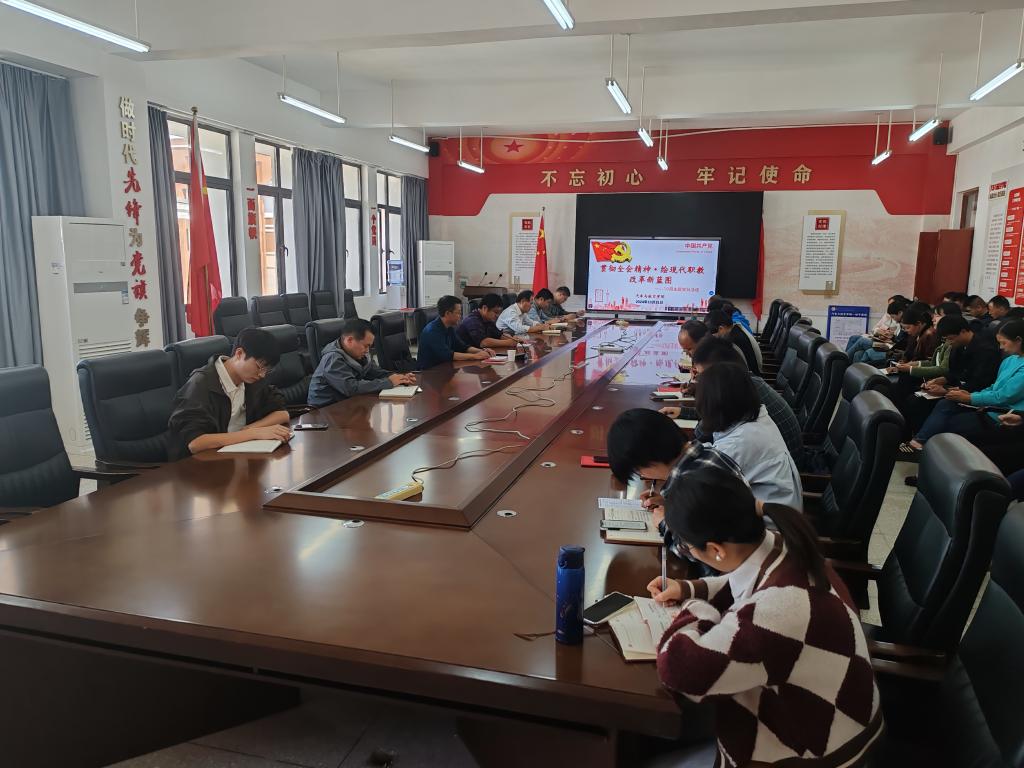 交流研讨环节,全体党员围绕主题充分开展开了交流讨论,黄刚表示在职业教育改革发展期,作为一名教师要把握机会,深学全会精神,紧跟时代发展步伐,做好为党育人才的好教师;杜良江表示作为职校教育工作者深感责任重大,唯有不畏艰辛,砥砺前行,共同肩负起“为党育人,为国育才”的圣神使命,聚焦突出政治引领,全面加强党的建设,回答好“强国建设,教育何为”的时代命题,为教育强国战略实现贡献交院力量。