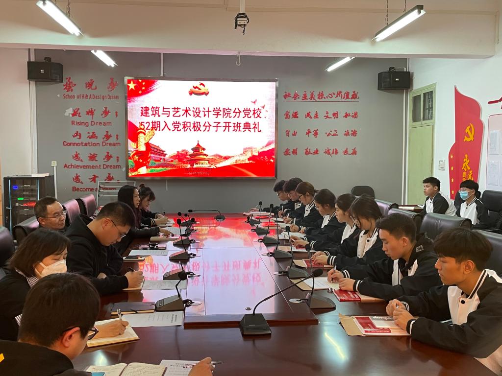 3月29日,建筑与艺术设计学院第五十二期入党积极分子培训班开班仪式在605党员活动室举行,建筑与艺术设计学院党总支书记李刚、党总支专职副书记谭明铭、学生支部党员及29名本期学员参加了此次开班仪式,开班仪式由李睿乾主持。