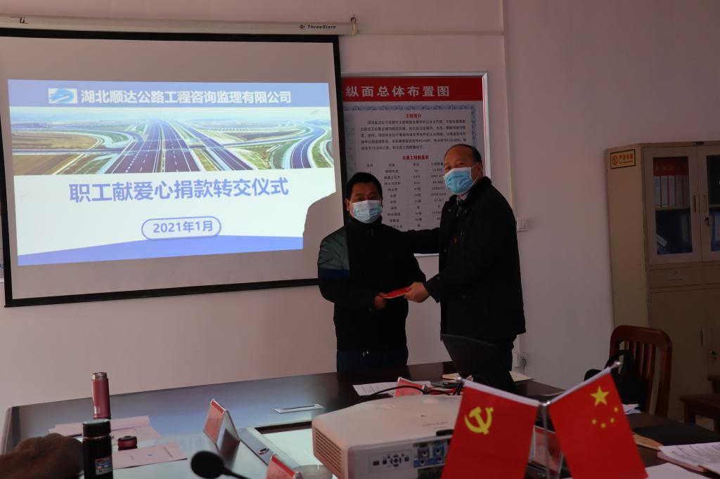 活动中,顺达公司机关党支部与宜张项目临时党支部签订了结对共建协议,双方党组织负责人表示将通过结对共建活动,加强党建互动,突出工程特色,开展党建+项目融合,共同推进项目建设管理各项工作提高;举行了公司爱心捐款转交仪式,总经理冯焰际将来自公司大家庭的温暖转交给项目困难职工彭饰民本人,并勉励彭饰民要积极面对生活困难,保持良好心态,坚定生活信心。资产公司党总支书记王金舟对本次活动进行了总结。他充分肯定了本次活动的组织,并就临时党支部在公司、项目上的定位、作用进行了解读,并就项目建设如何抓好安全、质量工作,如何正确履职,把住廉政底线,如何处理好参建各方关系提出了要求。