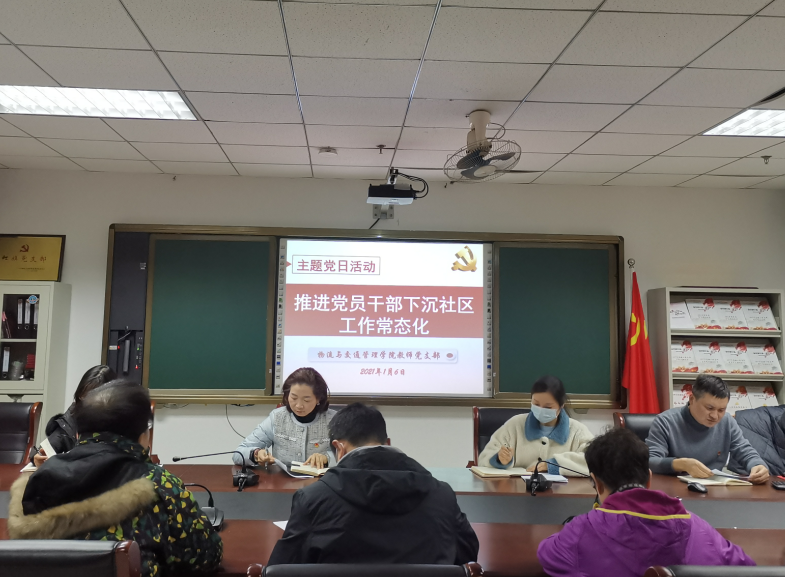 1月6日下午,物交院教师党支部在党员活动室召开了“推进党员干部下沉社区工作常态化”主题党日活动,教师党支部全体党员参与了此次活动,活动由纪检委员唐云山主持。