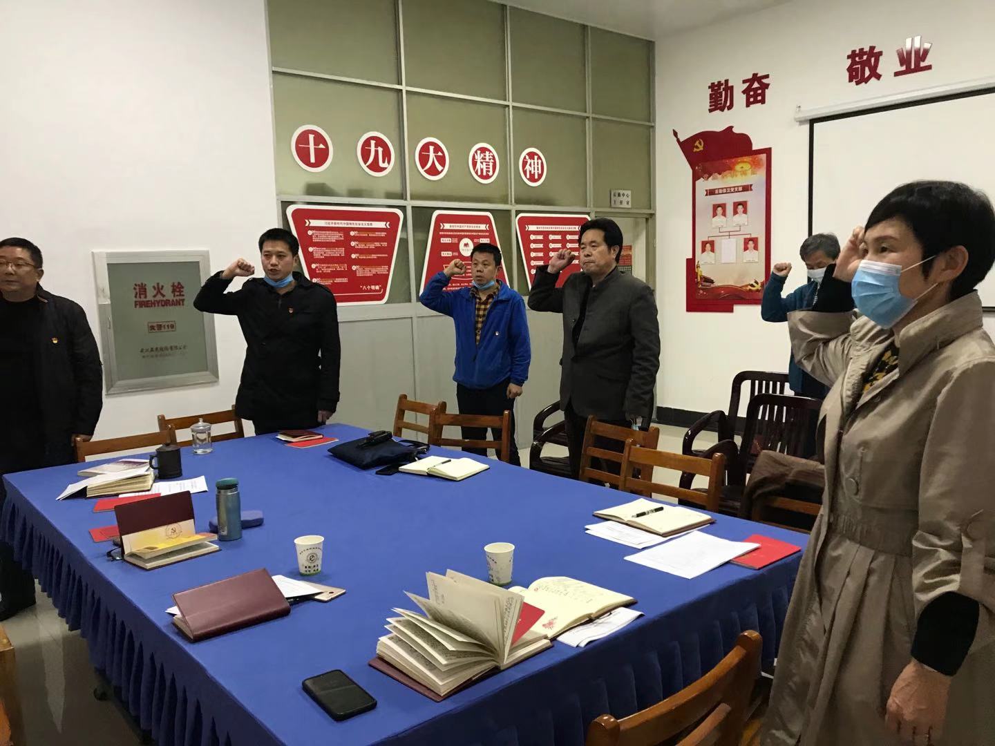 全体党员按要求交纳了党费,重温了入党誓词,集中学习了《关于巩固深化“不忘初心、牢记使命”主题教育成果的意见》《习近平在在基层代表座会上的讲话》等重要文件精神。会上通报了新一届支部委员会人员分工及职责。