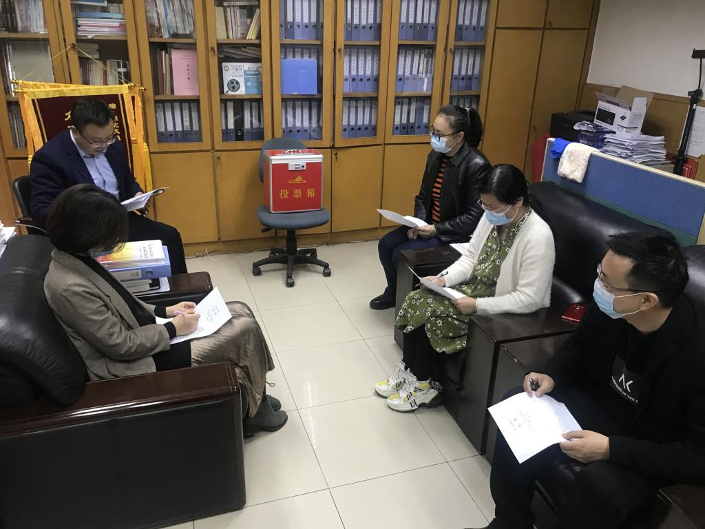 大会审议通过了报告和本次换届选举办法,推选出监票人张鹏和计票人贺婷婷。全体党员采取无记名投票方式,差额选举产生了新一届的支部委员会委员童洪川、丁昊、张鹏。