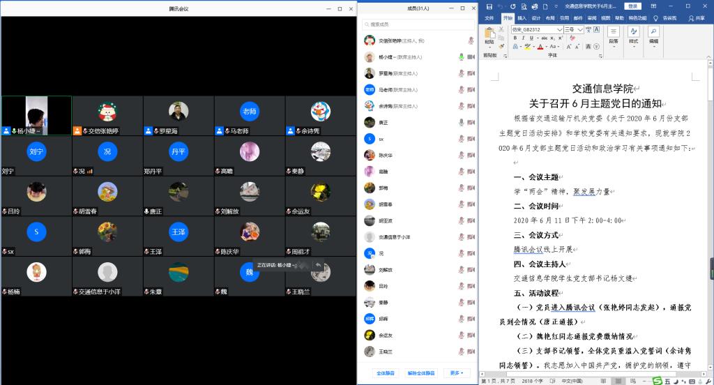 6月11日下午,交通信息学院党总支在线上开展了“学‘两会’精神,聚发展力量”主题党日活动,全体党员参加了本次活动。