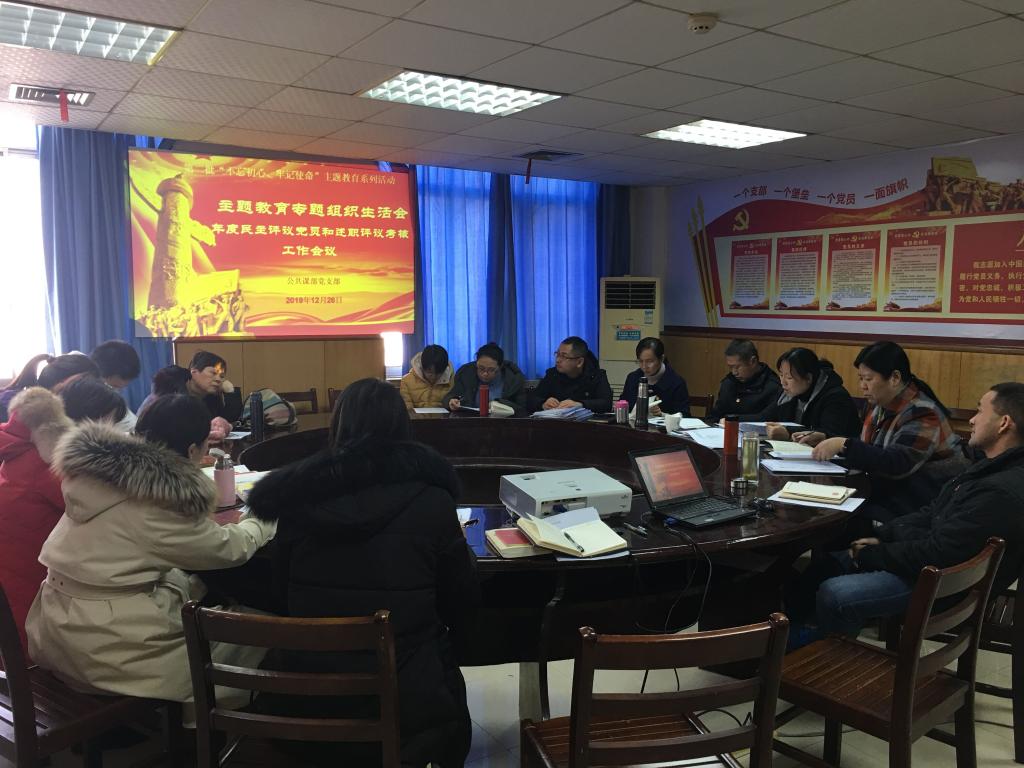 12月26日下午,公共课部党支部在党员活动室开展了第二批“不忘初心、牢记使命”主题教育专题组织生活会及年度民主评议党员和述职评议考核工作会议。