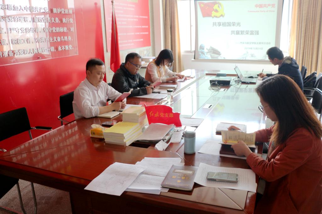 根据学校党委组织部相关工作安排,结合学校深入推进第二批主题教育实际,10月24日下午,汽车与航空学院全体党员在G407党员活动室开展了“共享祖国荣光,共襄繁荣富强”主题党日活动,活动由张玲同志主持。