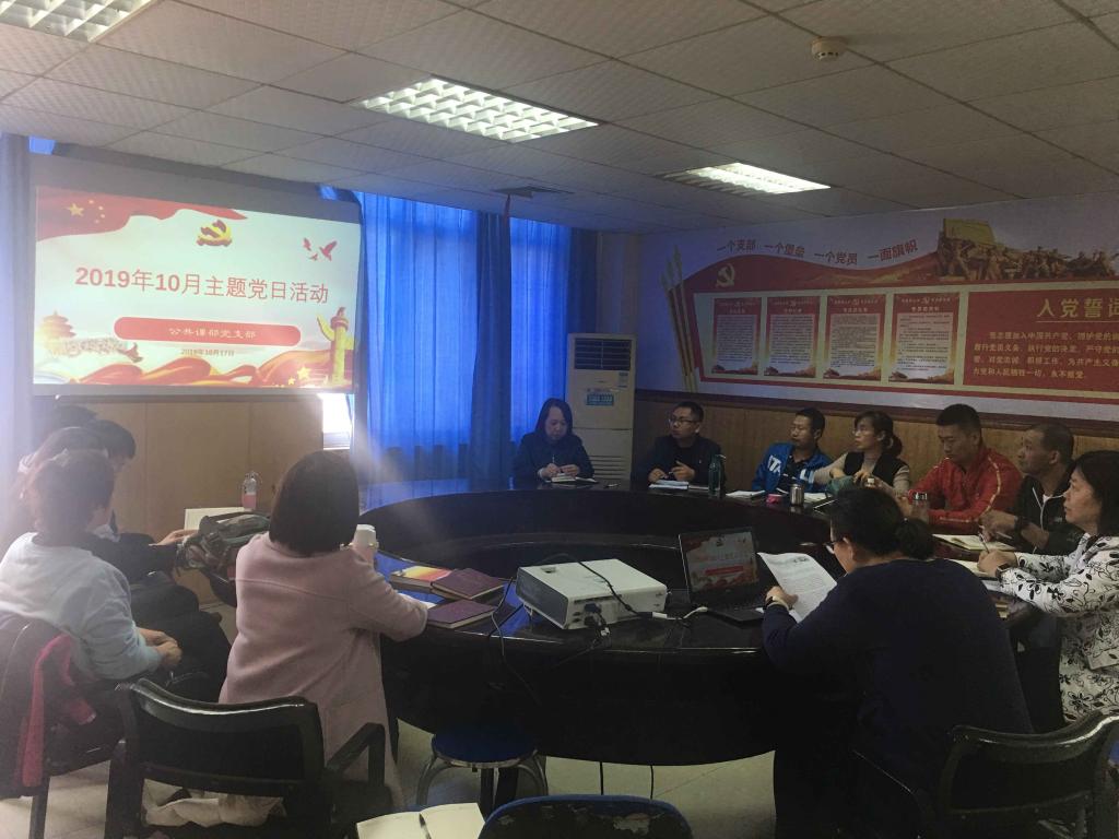 支部副书记唐艳主持会议,并领学了省纪委《关于6起违反中央八项规定精神典型案例的通报》和关于扶贫领域不正之风和腐败问题典型案例的通报;宣传委员丁勇领学了党章第三章和第四章;支部书记田文通报了学校10月份支部主题党日活动安排并布置了学习任务,强调了要加强对《习近平新时代中国特色社会主义思想学习纲要》和《习近平关于“不忘初心,牢记使命”论述摘编》的学习,要求支部党员再次学习“习近平总书记在庆祝中华人民共和国成立70周年大会上的重要讲话”,向支部党员推荐了《中国共产党九十年》、《党史故事100讲》、“伟大历程辉煌成就-庆祝中华人民共和国成立70周年大型成就展”网络展馆、《我们走在大路上》等学习资料。随后,唐艳代表支委会通报了支委会拟定的“七个着力”清单。支部党员张丽、路斌同志作了前期学习体会交流发言。支部书记田文对党员同志的工作予以肯定并布置了后续拟开展的支部活动。活动中,党员还交纳了10月份党费。