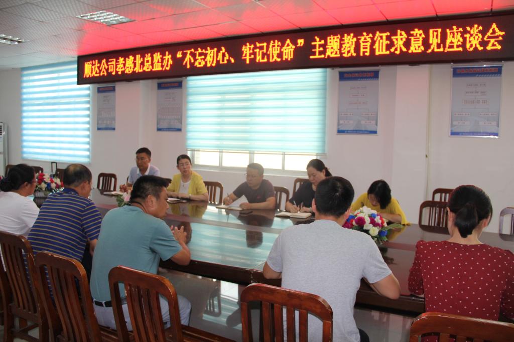 近日,顺达公司党支部召开主题教育调研交流会,旨在深入推进“不忘初心、牢记使命”主题教育,巩固主题教育实效。顺达公司党支部书记查丽萍主持会议并作总结讲话,公司领导班子成员,综合办公室、财务部负责人参加了会议。