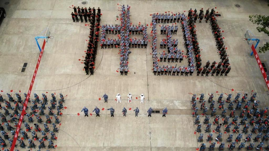 活动现场,全体新生在操场上排出“70,中国”的方阵队形,方阵中间站着佩戴党徽的学生预备党员和两名领唱同学,表达了对祖国70年华诞最深情的祝福。随着音乐《我爱你中国》响起,全体教职工党员挥动着红旗,分两组从方阵两侧汇聚到方阵中间加入合唱。现场学生面带微笑、挥动国旗,师生共同深情演唱,在歌声的回响中感受壮美的意境,最后反复吟唱的一句“我要把美好的青春献给你,我的母亲,我的祖国”曲调激昂、催人奋进。曲罢,各个方阵分别喊出了“祖国我为你骄傲”“我爱你中国”“保卫祖国,无上荣光”的口号,同学和教师们齐声高喊“我爱你中国”,祝福我们伟大的祖国繁荣富强。