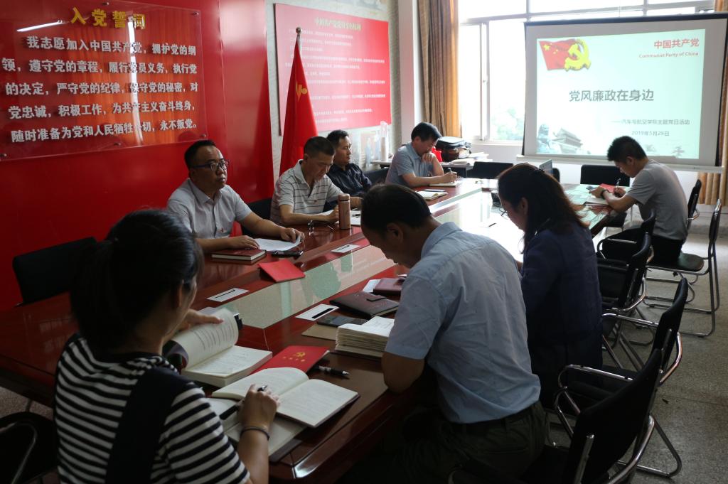 为了强化党员纪律和廉政意识,5月29日中午,汽车与航空学院党总支在G407党员活动室开展了“党风廉政在身边”主题党日活动,全体党员老师参加了活动。