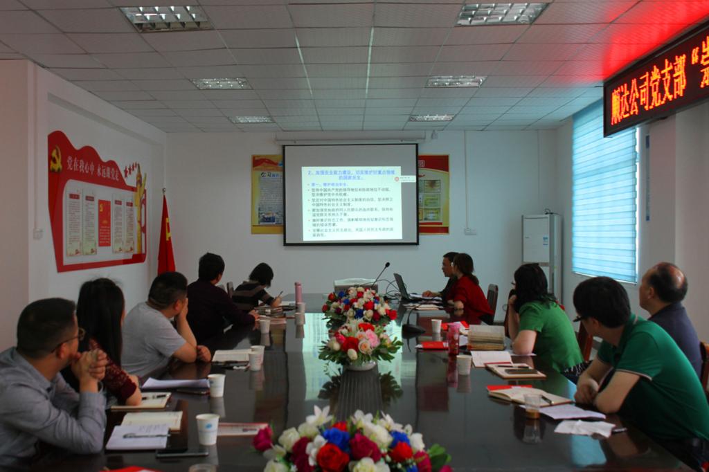 活动开始后,两个党支部的党员缴纳四月份党费,齐唱国歌,重温入党誓词,诵读党章《总纲》等规定动作。党支部书记查丽萍领学了《习近平在学校思想政治理论课教师座谈会上的重要讲话精神》和《全省教育大会精神》,党员焦劲松同志带领解读了《“总体国家安全观”学习资料汇编》,并逐一分析了国家现在面临的七个领域的重大风险。孝感北项目临时党支部书记张行茂以“坚持总体国家安全观”为主题讲授了一堂生动的“微党课”,引导全体党员从我做起,自觉维护国家安全。