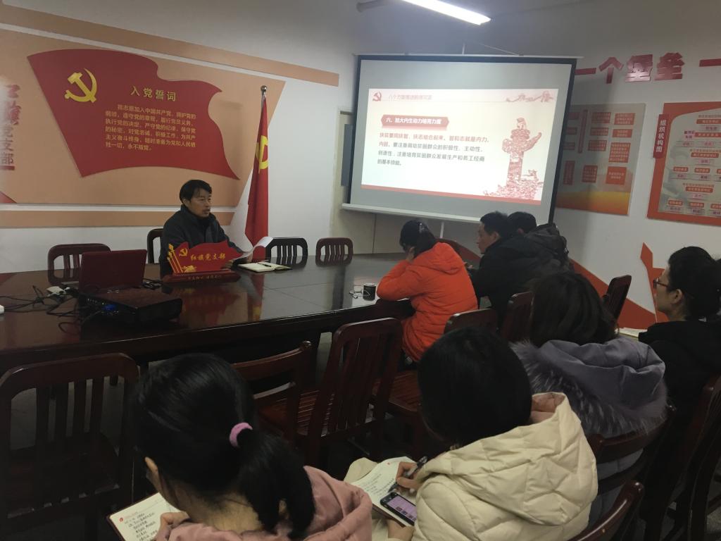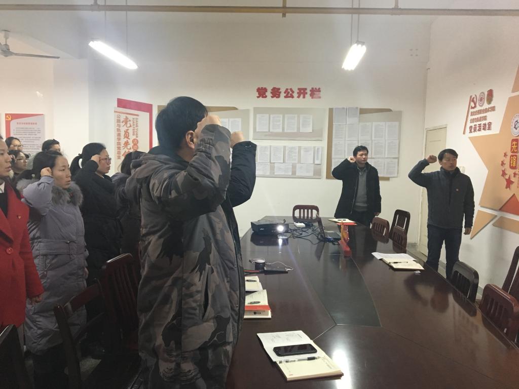 活动在国歌声中拉开序幕,程海潜带领全体党员教师重温入党誓词。随后,胡凯同志带领大家学习了《习近平总书记关于扶贫工作重要论述和视察湖北重要讲话精神资料汇编》,并对《关于5起形式主义、官僚主义典型案例的通报》进行了宣读。