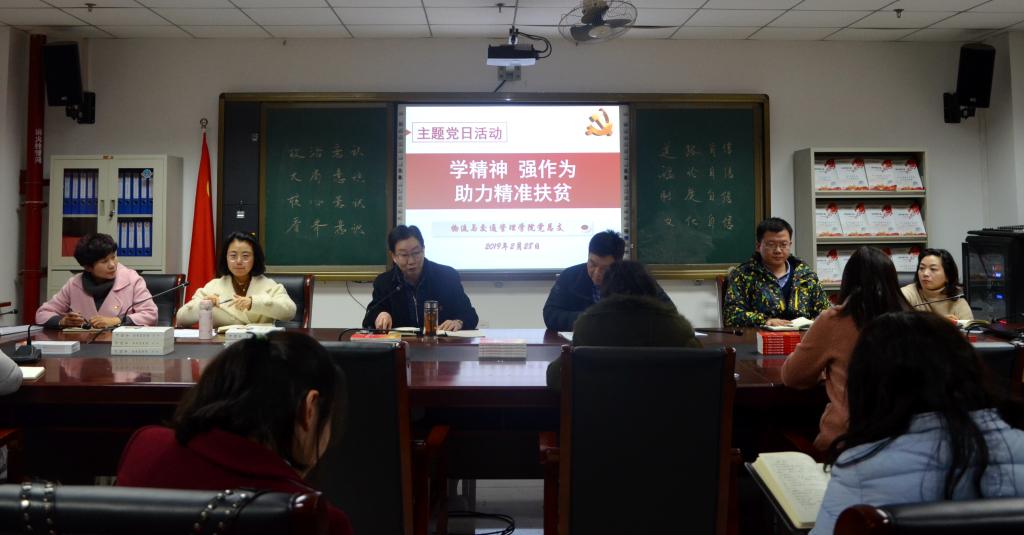2月28日下午,物流与交通管理学院党总支在党员活动室开展了“学精神 强作为 助力精准扶贫”主题党日活动,物交院全体党员参加,校领导齐建模同志以普通党员身份参加了此次活动。