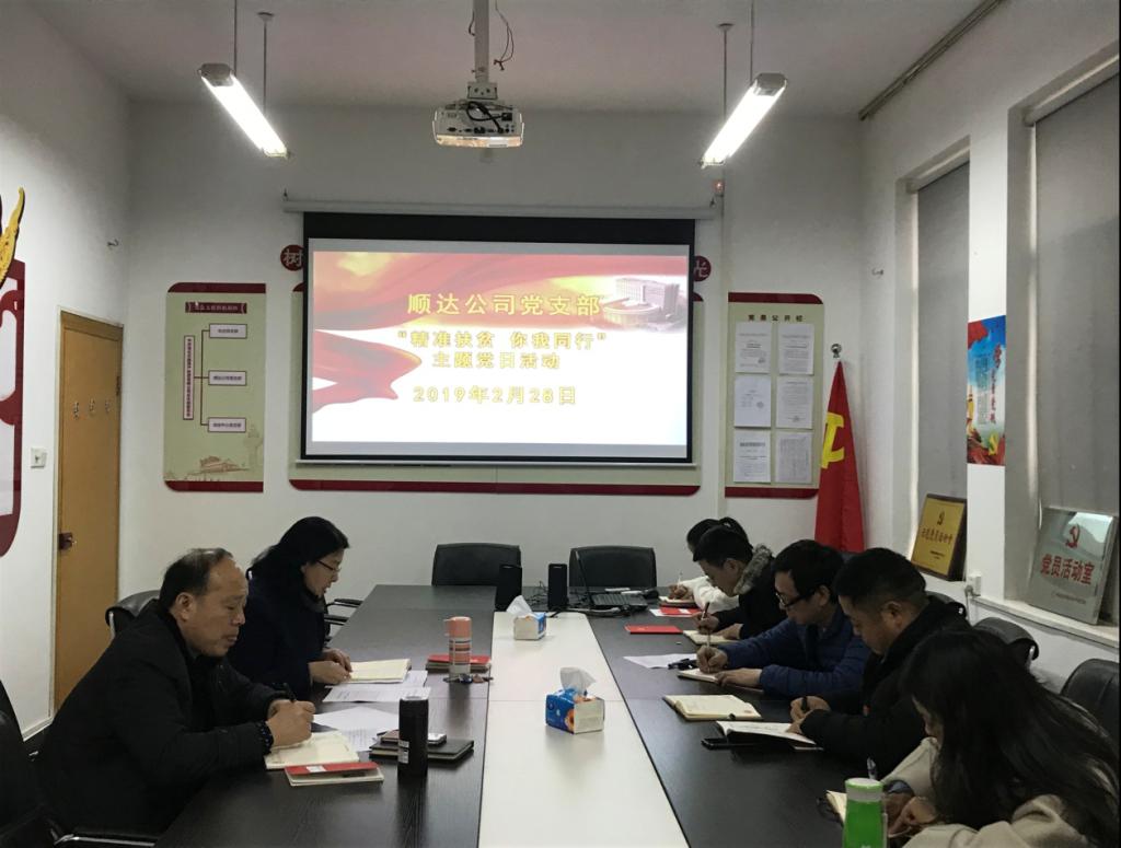 2月28日,顺达公司党支部在党员活动室开展“精准扶贫 你我同行”主题党日活动。公司全体党员参加此次活动。