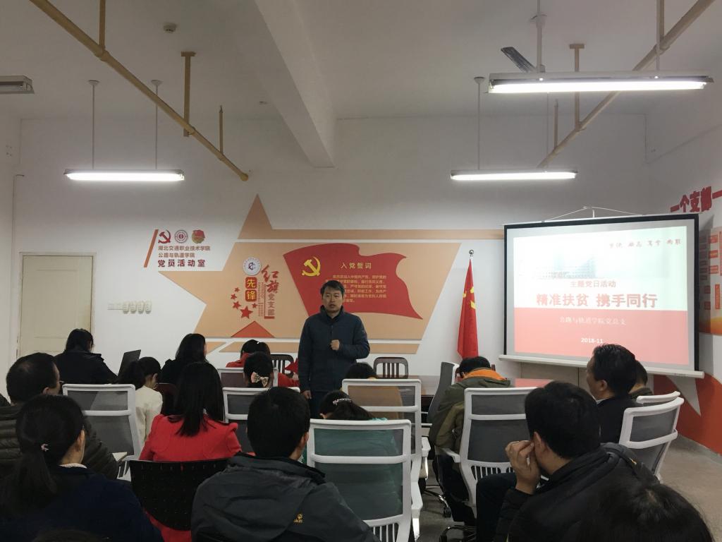 11月15日中午,公路与轨道学院党总支在G506党员活动室开展以“精准扶贫 携手同行”为主题的支部主题党日活动。公路与轨道学院党总支全体党员参加此次活动。