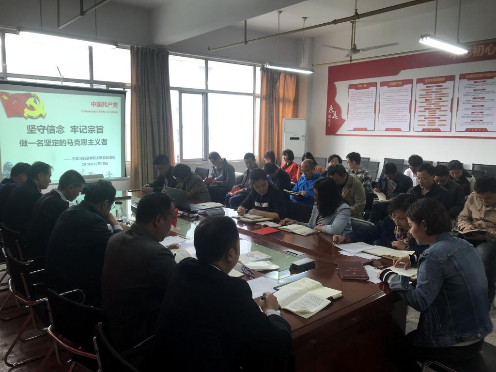 10月18日下午,汽车与航空学院党总支在G407党员活动室开展了“坚守信念,牢记宗旨,做一名坚定的马克思主义者”主题党日活动,汽航学院全体党员参加本次活动,校领导李全副书记以普通党员的身份参加活动并做点评发言。