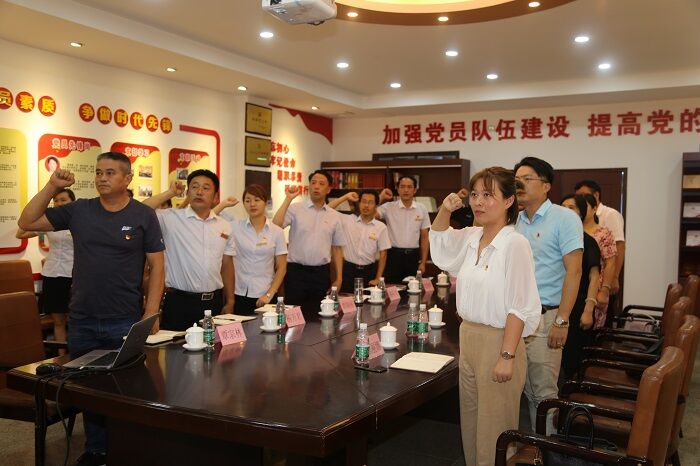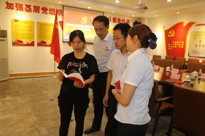 教培中心党支部书记施裕国带领教培中心、成培中心全体参会党员重温了入党誓词;成培中心杨太秀书记带领大家学习中国共产党章程片段—《党的组织制度》。接着,施书记从“构筑思想建设高地、打造和谐党员队伍”、“强化纪律刚性约束、严肃党内政治生活”、“发挥基层党组织作用,坚持以党建促业务”三个方面介绍了教培中心党员示范党员活动室和红旗党支部创建方面的经验和做法。