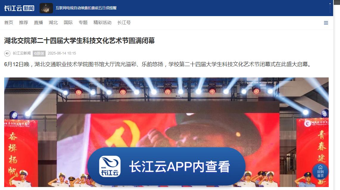 24年来,大学生科技文化艺术节既成为湖北交院强化大学生大思政课教育、学习科学知识、练就过硬本领、展示青春活力的一个重要平台,又成为学校校园文化建设的一道亮丽风景,还沉淀为全省交通职业教育领域的一张育人名片。在这个舞台上,交院学子可以尽情展现才华,相互交流学习;立足专业,将所学知识运用到实践;从主题演讲到红色演绎,从文化传承到科技创意设计,充分彰显了当代大学生的青春风采和敢为人先的创新精神,不仅是一场思想铸魂、文化浸润的精神盛宴,更是一次技能提升、追逐梦想的实践之旅。