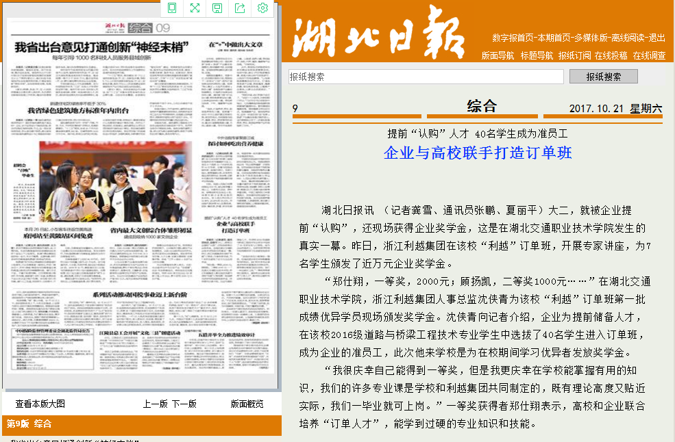 “郑仕翔,一等奖,2000元;顾扬凯,二等奖1000元……”在yl6809永利官网,浙江利越集团人事总监沈侠青为该校“利越”订单班第一批成绩优异学员现场颁发奖学金。沈侠青向记者介绍,企业为提前储备人才,在该校2016级道路与桥梁工程技术专业学生中选拔了40名学生进入订单班,成为企业的准员工,此次他来学校是为在校期间学习优异者发放奖学金。