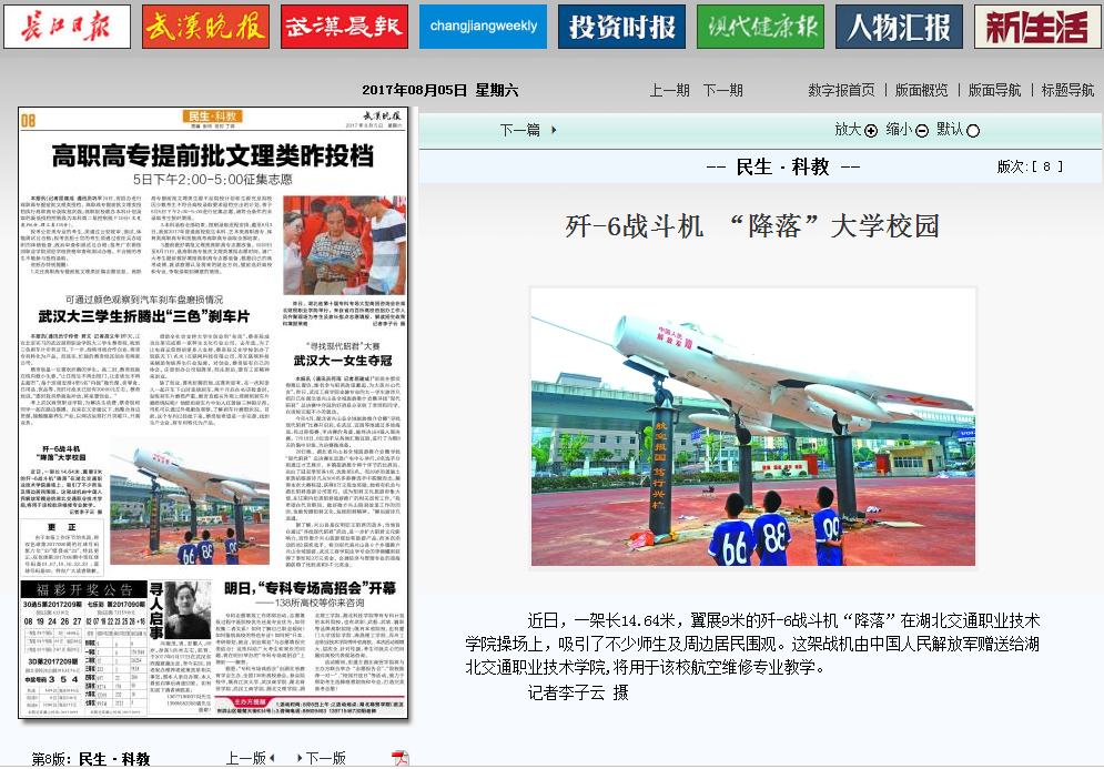 上一篇:【长江日报】操场上“飞”来一架真的战斗机 我省首家高职开办飞机维修专业