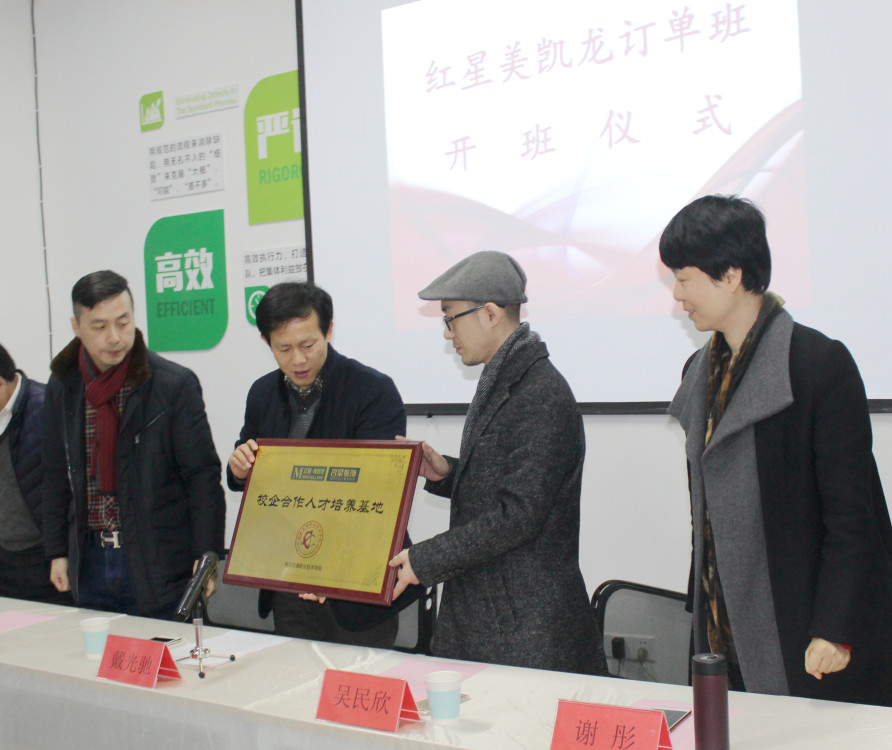 来自yl6809永利官网人文与艺术设计学院的200余名学生经过了企业的笔试、面试、心理测试等多个环节的层层筛选,最终有55名优秀学子成功胜出,成为企业的准员工。2016年12月28日,在yl6809永利官网人文与与艺术设计学院隆重举行2016年“红星美凯龙设计服务中心-名星装饰订单班”开班仪式。在开班仪式上,红星美凯龙设计服务中心-名星装饰总经理吴民欣谈到,企业和学校一起共育人才,高标准、严格要求地培养学生精益的工匠精神,培养学生适应企业的零距离。