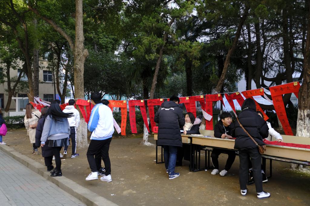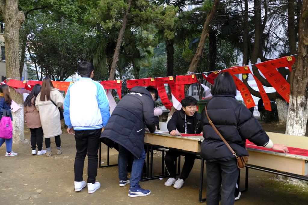 来自城市轨道交通机电技术专业的马祖贵同学向记者说道:“我从小就爱好写书法,学校虽没有开设书法课,但经常会举办一些书法活动,‘迎新年 送祝福’活动,不仅为全校师生们送来满满的祝福,也有助于提升学生的书法功力。”活动相关负责人介绍,他们后期将在校内举办春联的活动,为我校教职工、学生送去新年祝福。(摄影/张嘉铖 朱伊凡)