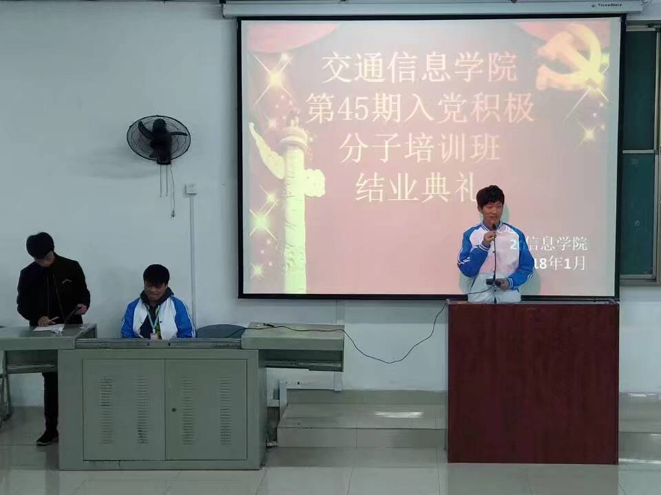 2018年1月11日,中午12点10分,交通信息学院在D栋501举行第45期入党积极分子培训班结业典礼。