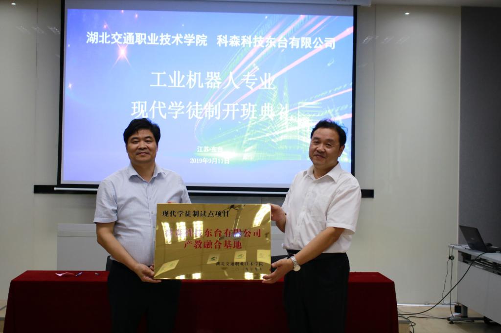 随后,校党委副书记李全为科森科技东台有限公司产教融合基地授牌。汽车与航空学院院长李建明、科森科技东台有限公司人力资源部经理仲建代表校企双方签署现代学徒制合作协议和“科森班”人才订单培养协议。
