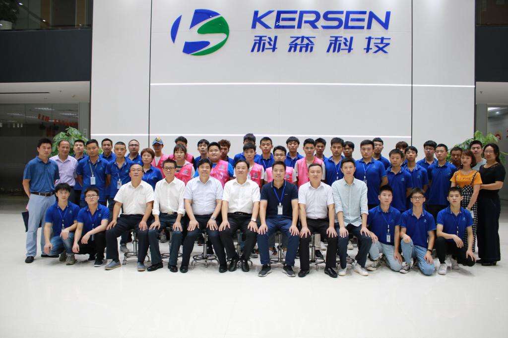 9月11日下午,我校2018级工业机器人技术专业现代学徒制开班暨产教融合基地授牌仪式在科森科技东台有限公司行政楼会议厅隆重举行。东台市人力资源中心党委副书记张二勇,科森集团常务副总裁吴惠明,校党委副书记、副校长李全,汽车与航空学院党总支书记、院长李建明,副院长张鹏,机电教研室相关教师,2018级工业机器人技术专业第一批学徒和科森科技企业师傅出席开班仪式。