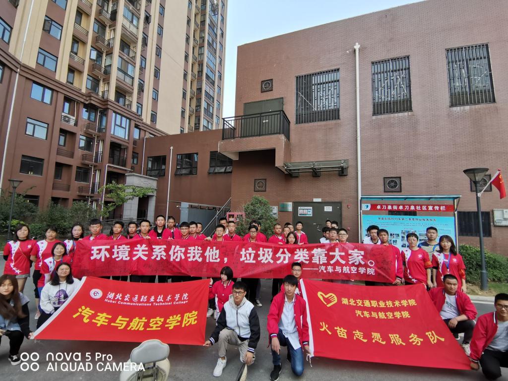 为了弘扬志愿服务精神,宣传普及垃圾分类知识,示范指导垃圾分类方法,10月20日上午9点,汽车与航空学院火苗志愿服务队的志愿者们来到卓刀泉社区泉盛花园小区开展“环境关系你我他,垃圾分类靠大家”志愿服务活动。