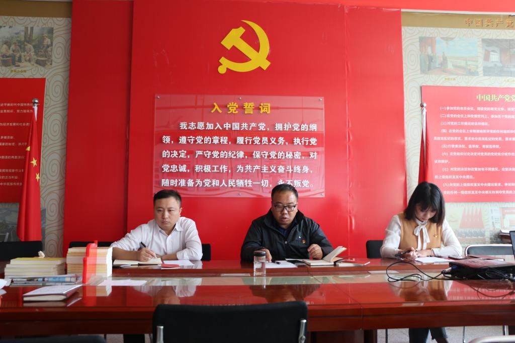 全体党员重温入党誓词后,由姜松舟同志领学了党章第四章《党的地方组织》,随后大家集中学习了《习近平总书记在庆祝中华人民共和国成立70周年大会上的重要讲话》、《关于扶贫领域不正之风和腐败问题典型案例的通报(十九)》等内容。