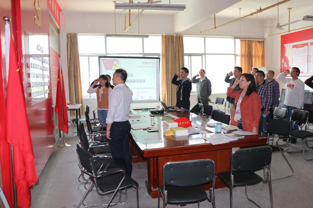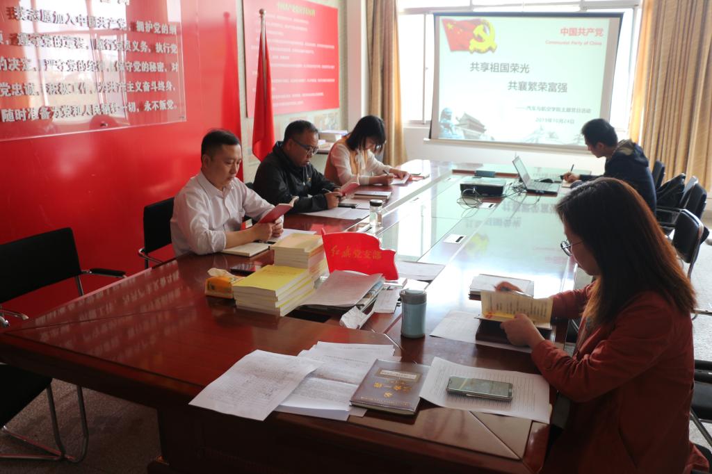 根据校组织部关于10月份支部主题党日活动安排的要求,结合学校深入推进第二批主题教育实际,10月24日下午2:00汽车与航空学院全体党员在G407党员活动室开展了“共享祖国荣光,共襄繁荣富强”主题党日活动,活动由张玲主持。