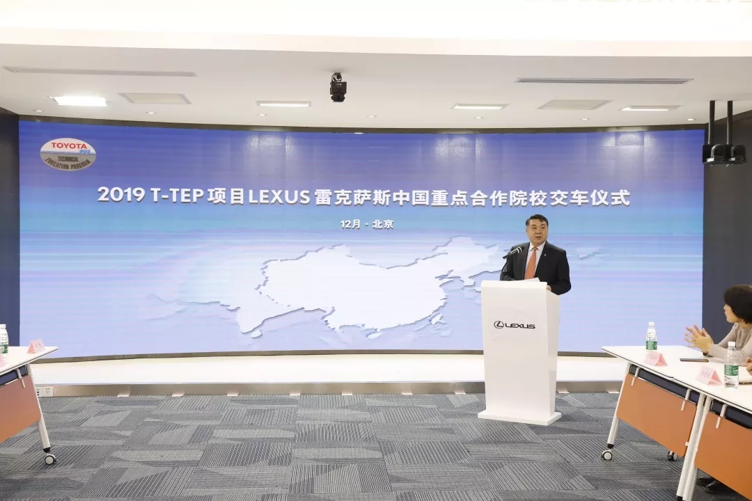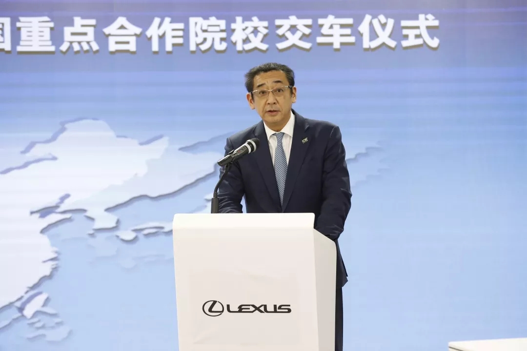 LEXUS雷克萨斯中国大竹仁执行副总经理致辞。他回顾了T-TEP项目25年来为中国汽车维修职业教育做出的贡献,并再一次强调了人才培养对企业发展的重要性。随后,大竹仁依次为各院校赠车。