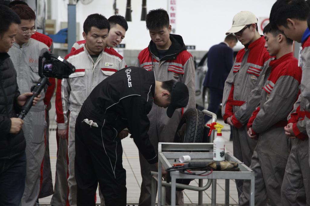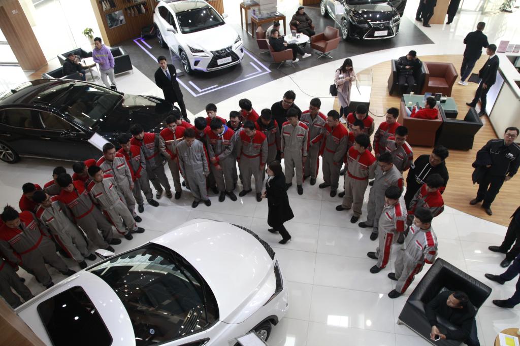 同往年不同,今年增加了经销店之行环节,丰田班的43名同学和丰田班老师一同前往武汉雷克萨斯经销店进行参观学习。通过销售之旅、服务顾问的一天、QM快速保养、疑难电路检修、总成件大修和学长的经验分享等环节,有助于学生制定职业发展规划和学习目标,提前熟悉工作环境,为后期的顶岗实习打下基础。