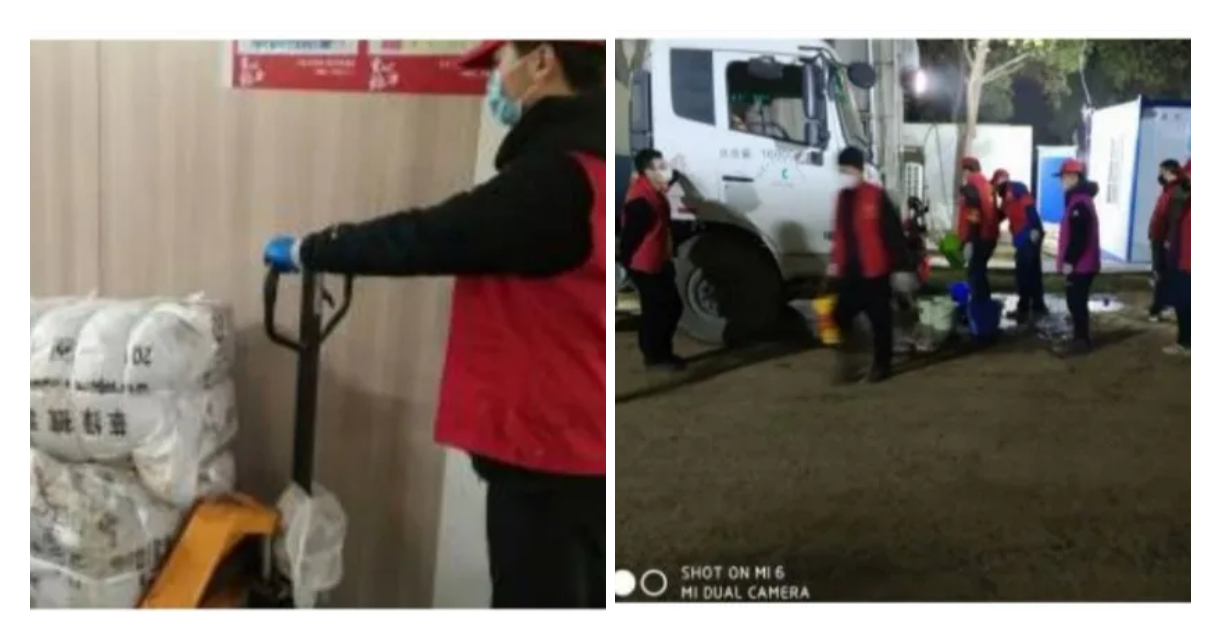 来到长江新城院区现场,各个仓库一片狼藉,70多名志愿者拿起工具给仓库清扫消毒、清理杂物、清除泥尘、洒水拖地,做完清洁后,女士留在仓库整理床铺,男士被安排去搬运物资。超过一千名患者的物资需要大家在一天内搬运整理完毕,重物肩上扛,热血心头涌,院区非常大,不知不觉大家搬运货物从下午4:00到了晚上12:00。雷泽宇的双手被货物磨破了皮,双腿发软,早已没了力气,但是靠着顽强的信念依旧坚持,终于在凌晨1点,四个仓库在70位志愿者的合力下布置完毕。他告诉我们:“工作相当辛苦,但这份经历丰富了我的人生阅历,让我倍感光荣,希望1000多位患者能在我们的帮助下早日康复。武汉加油!中国加油!”