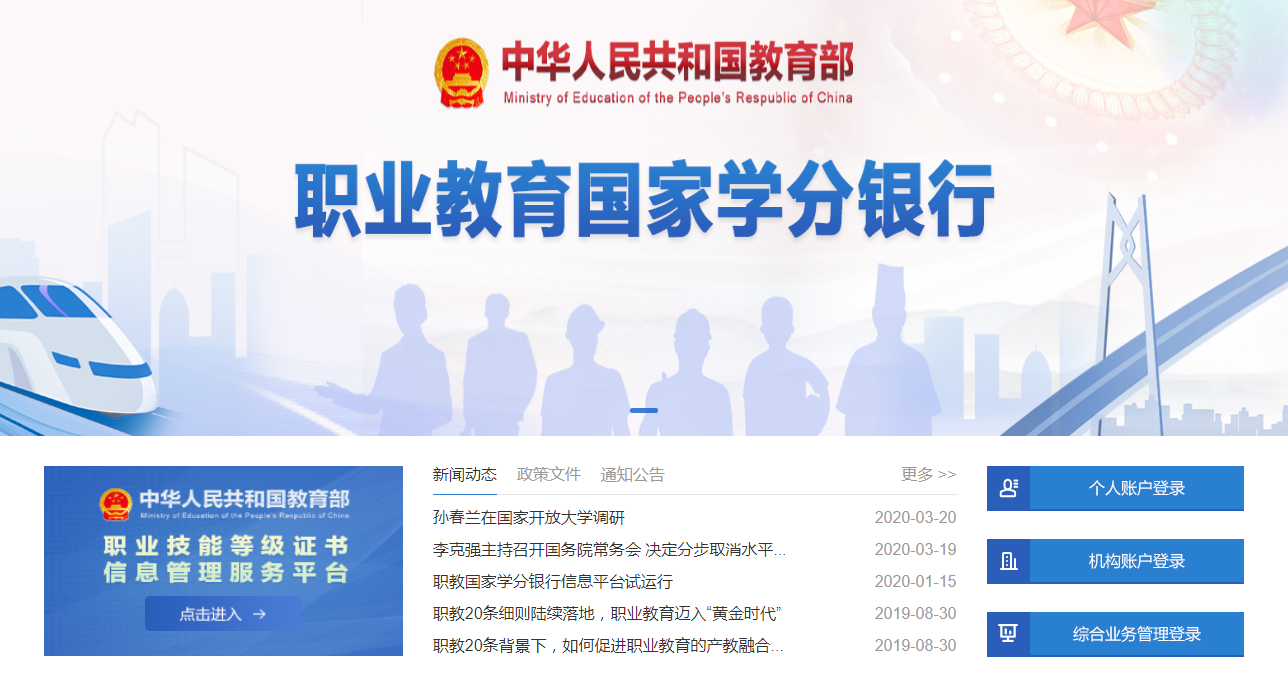 建设学分银行,是国家推进继续教育学习成果认证、积累与转换制度,加强终身教育体系的顶层设计。学分银行在1+X证书信息管理服务平台上为学习者建立学分银行账户,提供学历教育课程、非学历培训课程、通识课程等丰富的资源,方便在校生获得在线课程学分,社会学习者也可根据自身需求在选学完成之后获得证书,初步搭建了终身学习“立交桥”。