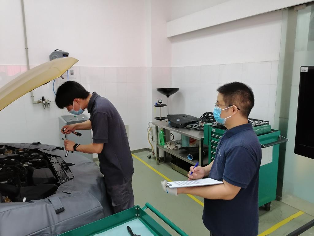 6月19至24日,经过近一年工学结合式系统培训的22名宝马机电类、非技术类BEST班学生,分批、错峰在基地接受了初级机电工、初级服务顾问及零件认证。其中机电认证历时三天,包含ISTA查询+理论考试、电气测量及服务功能、一般保养、一般维修四个考核模块;非技术类认证历时两天,包含ETK+笔试、电话沟通、接车、交车+功能操作等四个考核模块。我院宝马培训基地项目组讲师徐德亭、姜松舟、娄敏负责认证工作,所有学员顺利完成了认证考核项目。返校学员纷纷表示,将心怀感恩之情,在以后的日子中,继续追寻自己的蓝天白云梦想,用自己的方式表达“we are best!”