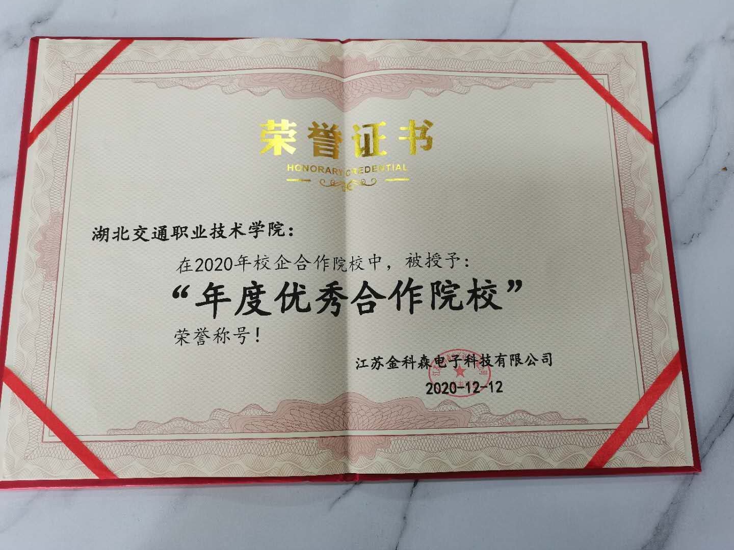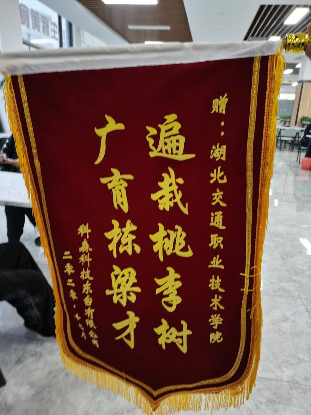 首先,仲建经理对我校参与现代学徒制的师生给予了高度肯定和赞扬,对获得现代学徒制“优秀学员”的同学表达了诚挚的祝贺,他表示科森科技的大门永远为湖北交院的同学们敞开,欢迎同学们回科森实习就业。随后,公司为纪实、方菲、张宇、田永鹂、吴昊宇、王海洋、蔡高峰、易呈翱、阮景宇9名优秀学生颁发了“优秀学员”荣誉证书,为驻厂辅导员颁发了“优秀辅导员”证书,并授予我校“遍栽桃李树、广育栋梁才”锦旗和“优秀校企合作院校”证书。